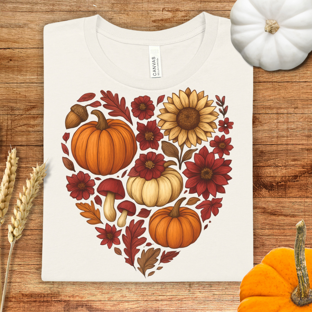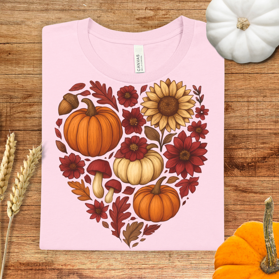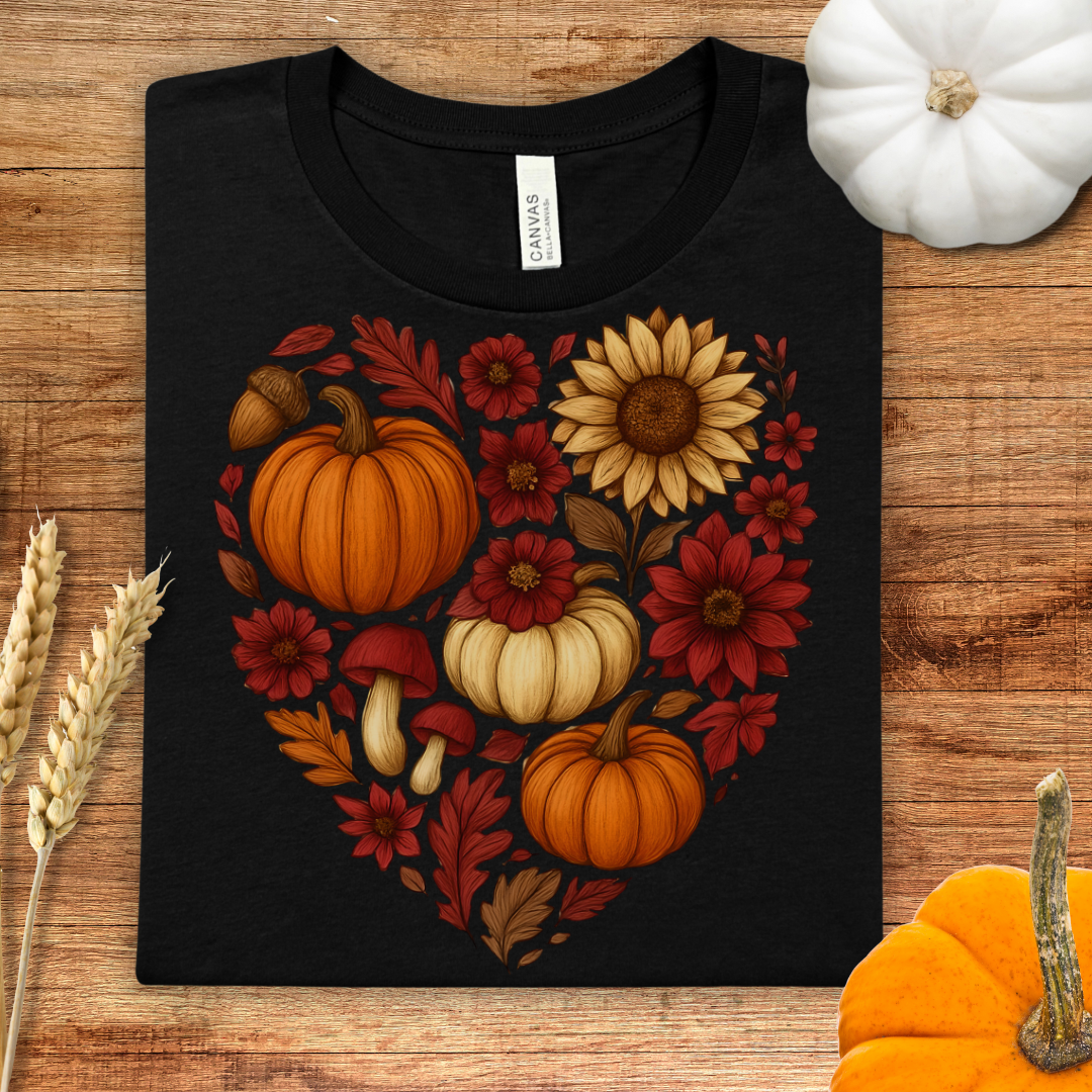 Autumn Red Heart Pumpkin Floral Fall T-Shirt