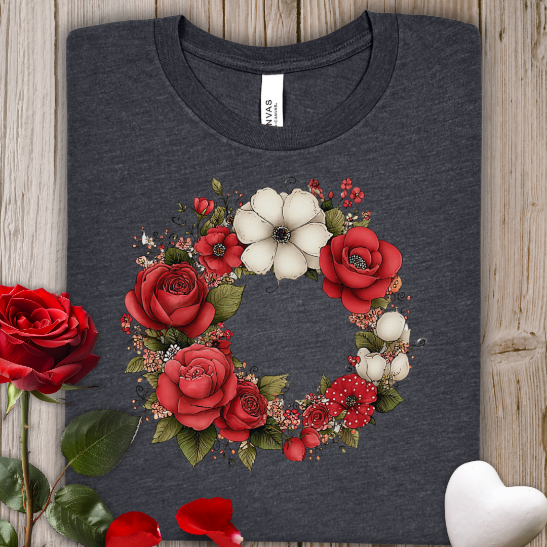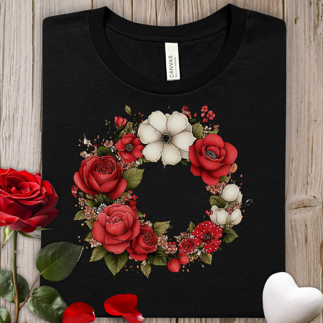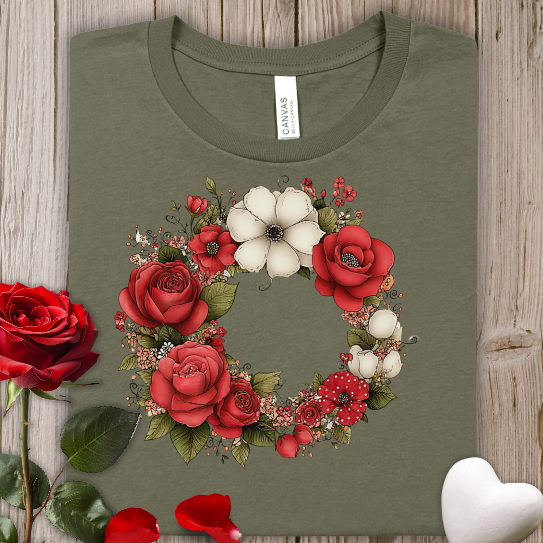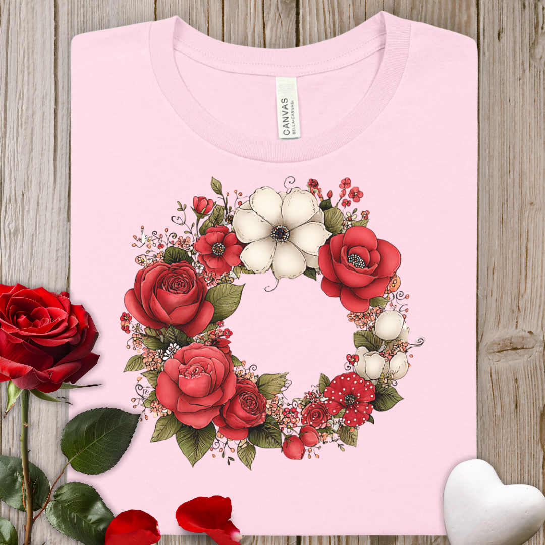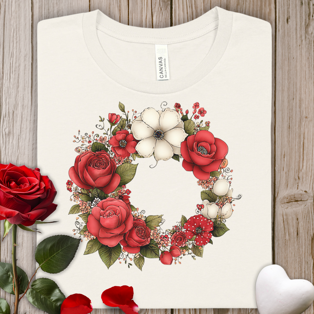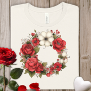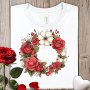 Floral Wreath Tee — Red Rose & Cotton Blossom Graphic Shirt