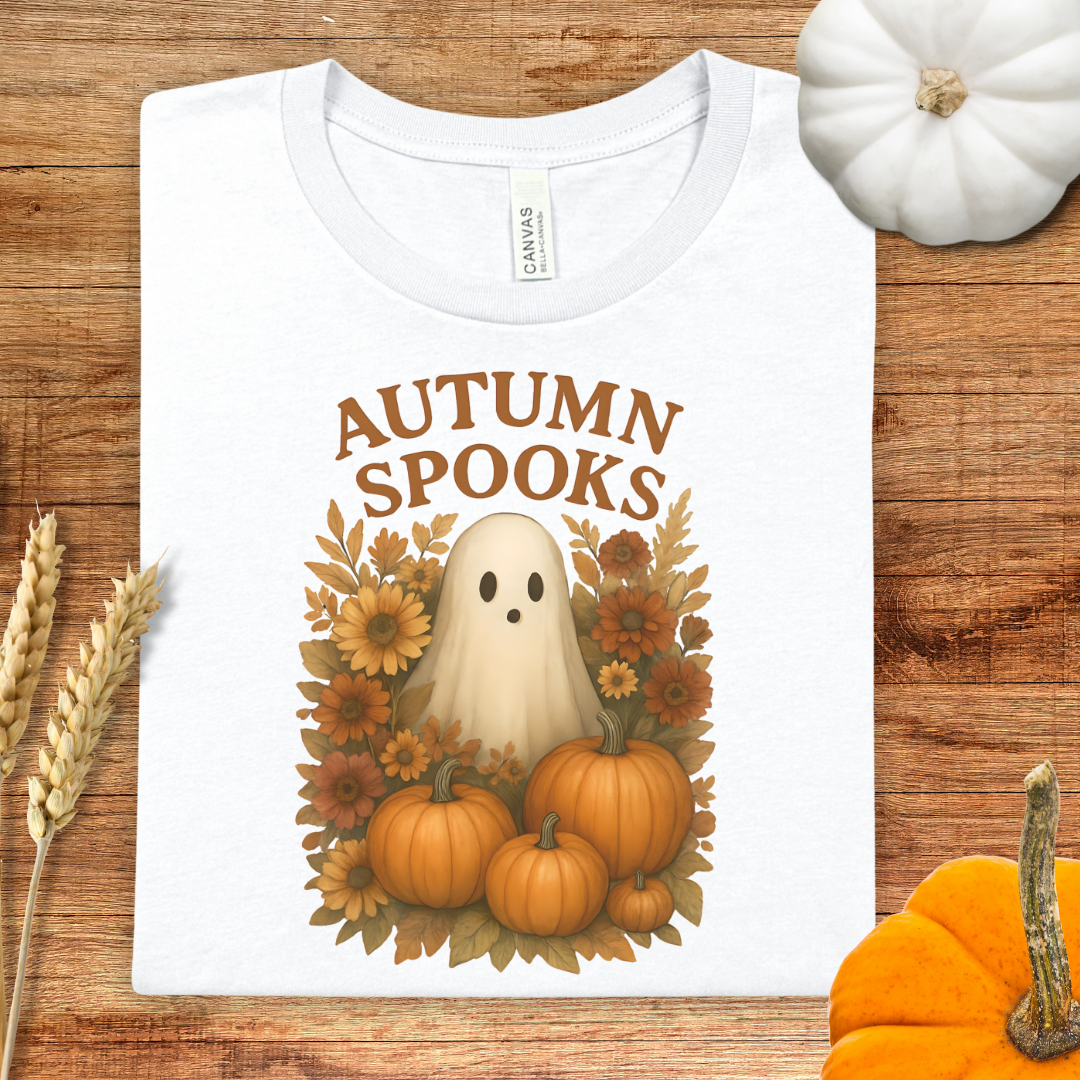 Autumn Spooks Fall Ghost and Florals T-Shirt