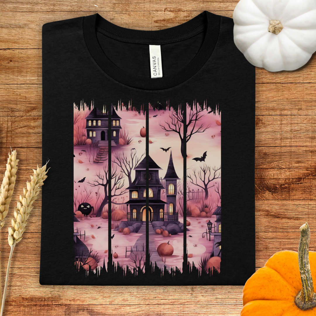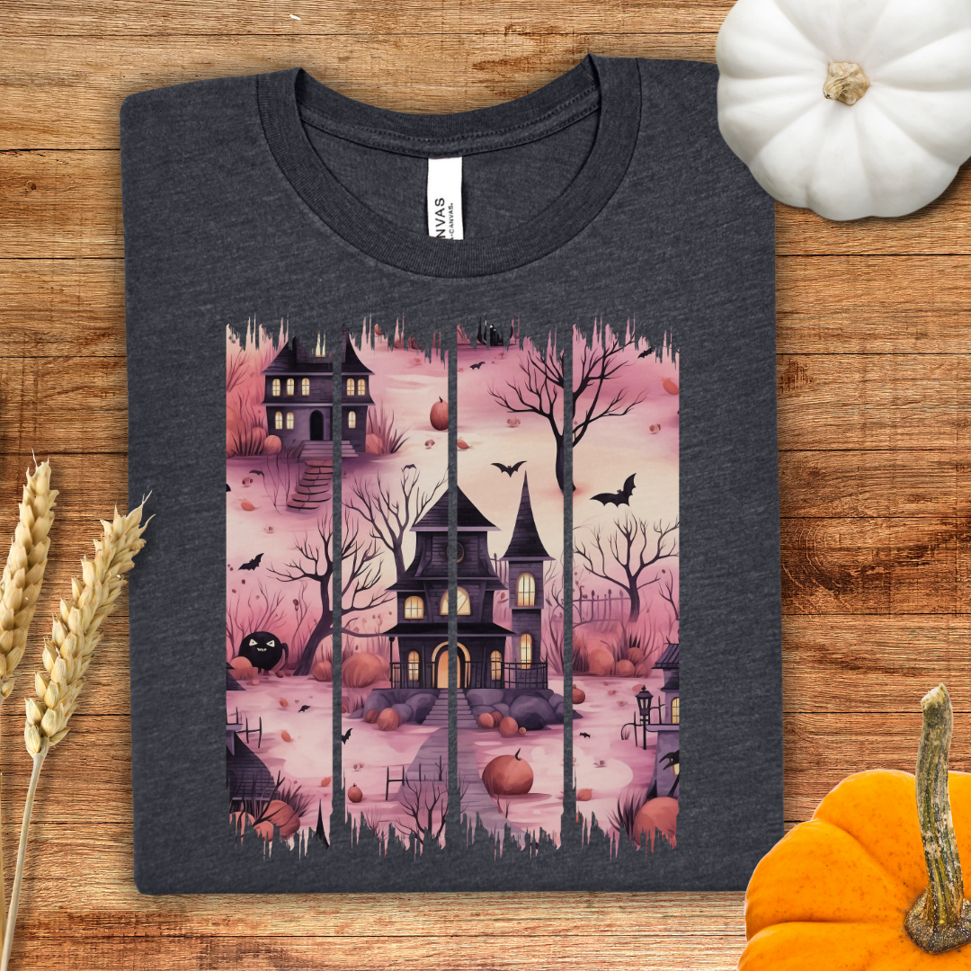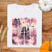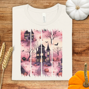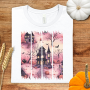 Pink Haunted House Brush Stroke Halloween T-Shirt