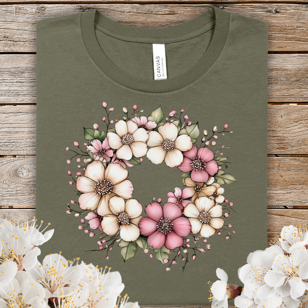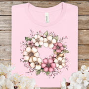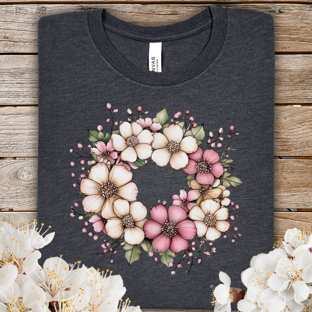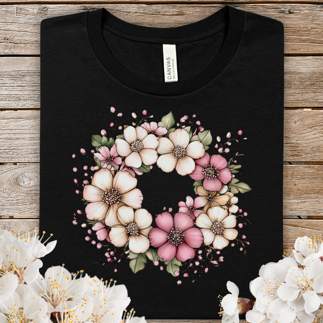 Spring Floral Wreath Tee — Pastel Pink & Cream Flower Graphic T-Shirt