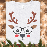 Cute Glasses Reindeer Tee — Holiday Christmas Shirt