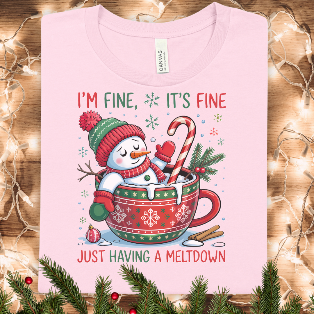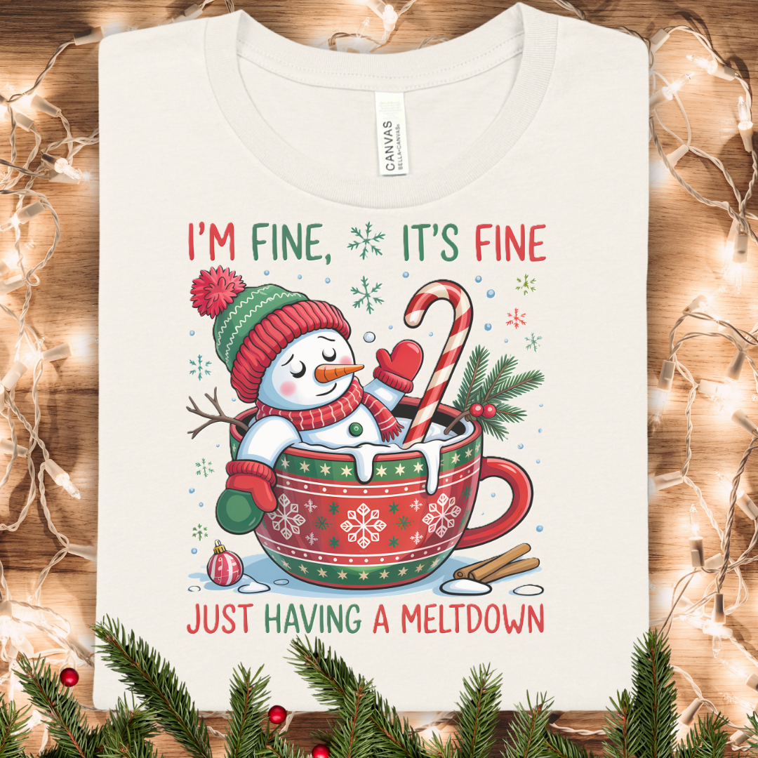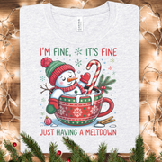 Funny Christmas Snowman Tee – "I’m Fine, It’s Fine, Just Having a Meltdown" Holiday T-Shirt
