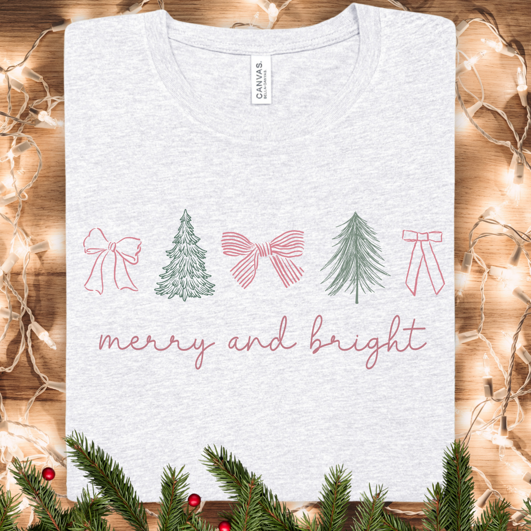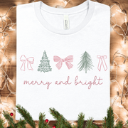 Merry and Bright Christmas Tee Coquette Bow and Trees