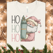 Sneaking Santa Christmas Tee — HO HO HO Cute Pastel Santa Holding Gift
