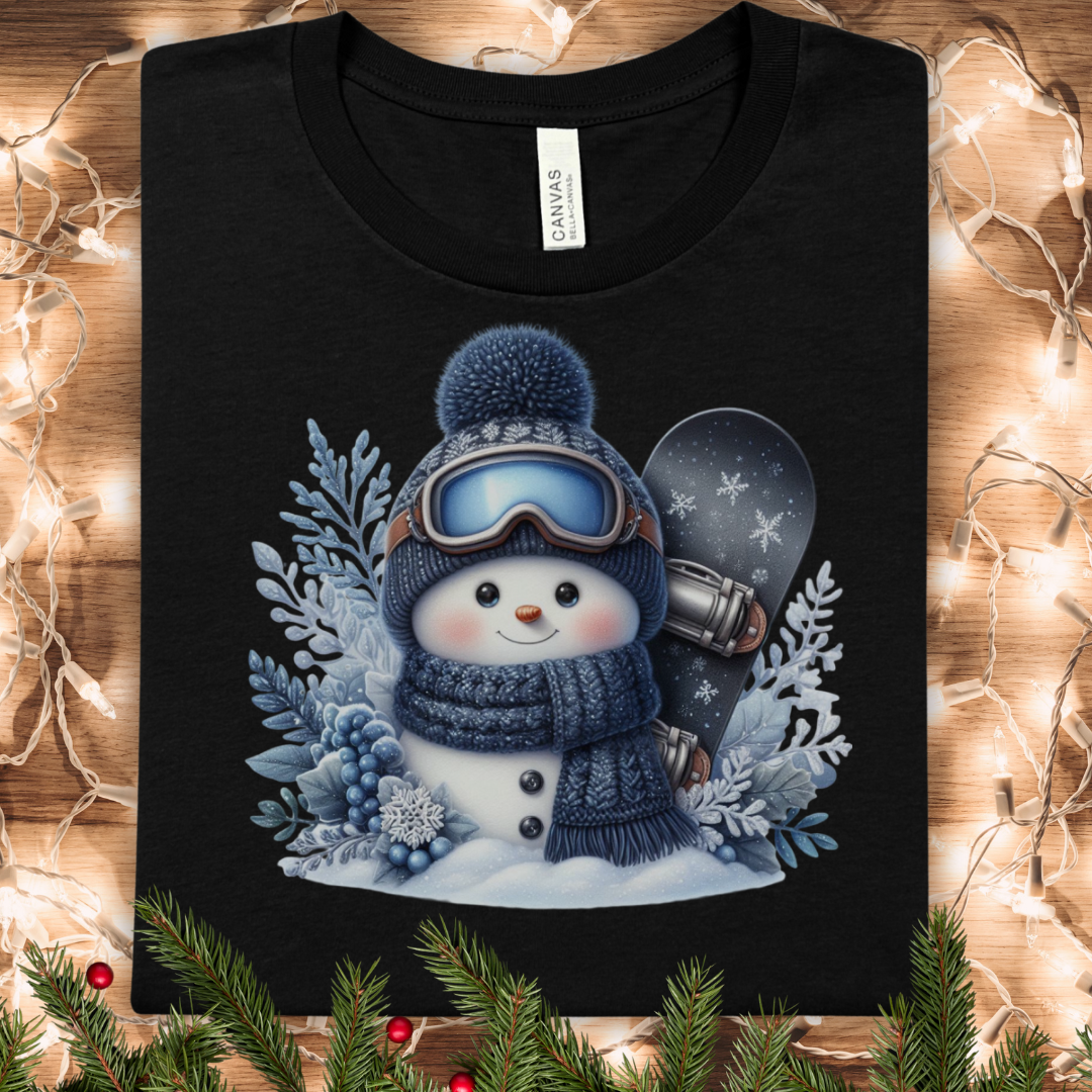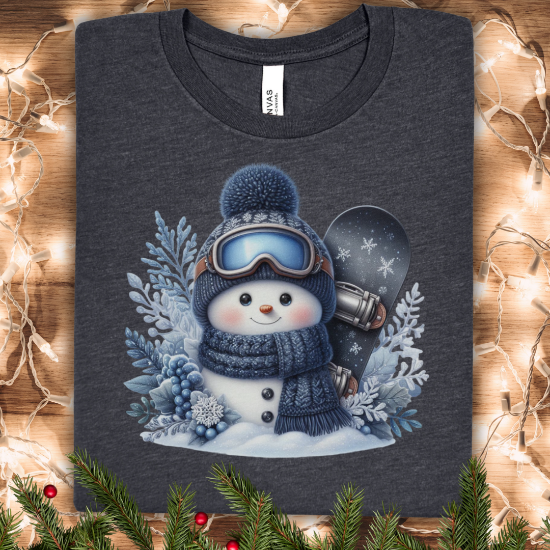 Snowboard Snowman T‑Shirt — Cute Winter Skiing Snowboarder Graphic Tee